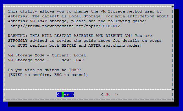 - Switching VoiceMail Storage locations is an “all-or-nothing” process. All mailboxes must use EITHER LOCAL OR IMAP storage. You simply CANNOT have some mailboxes stored locally and some on your IMAP server