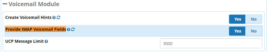 Locate the Voicemail Module section and change Provide IMAP Voicemail Fields to YES (you can simply search for keyword “imap” using your browser's in-page text search):
